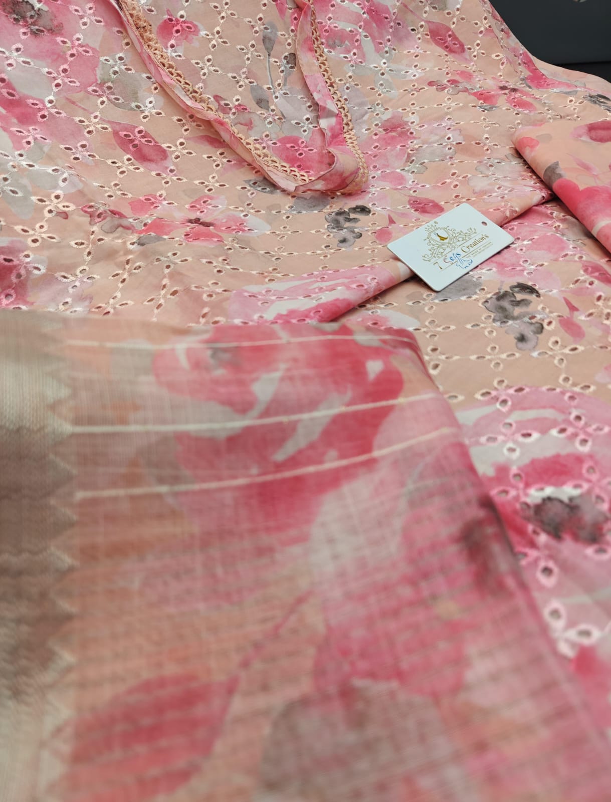 TOP - Cambric Cotton with beautiful digital printing & schiffli work all over