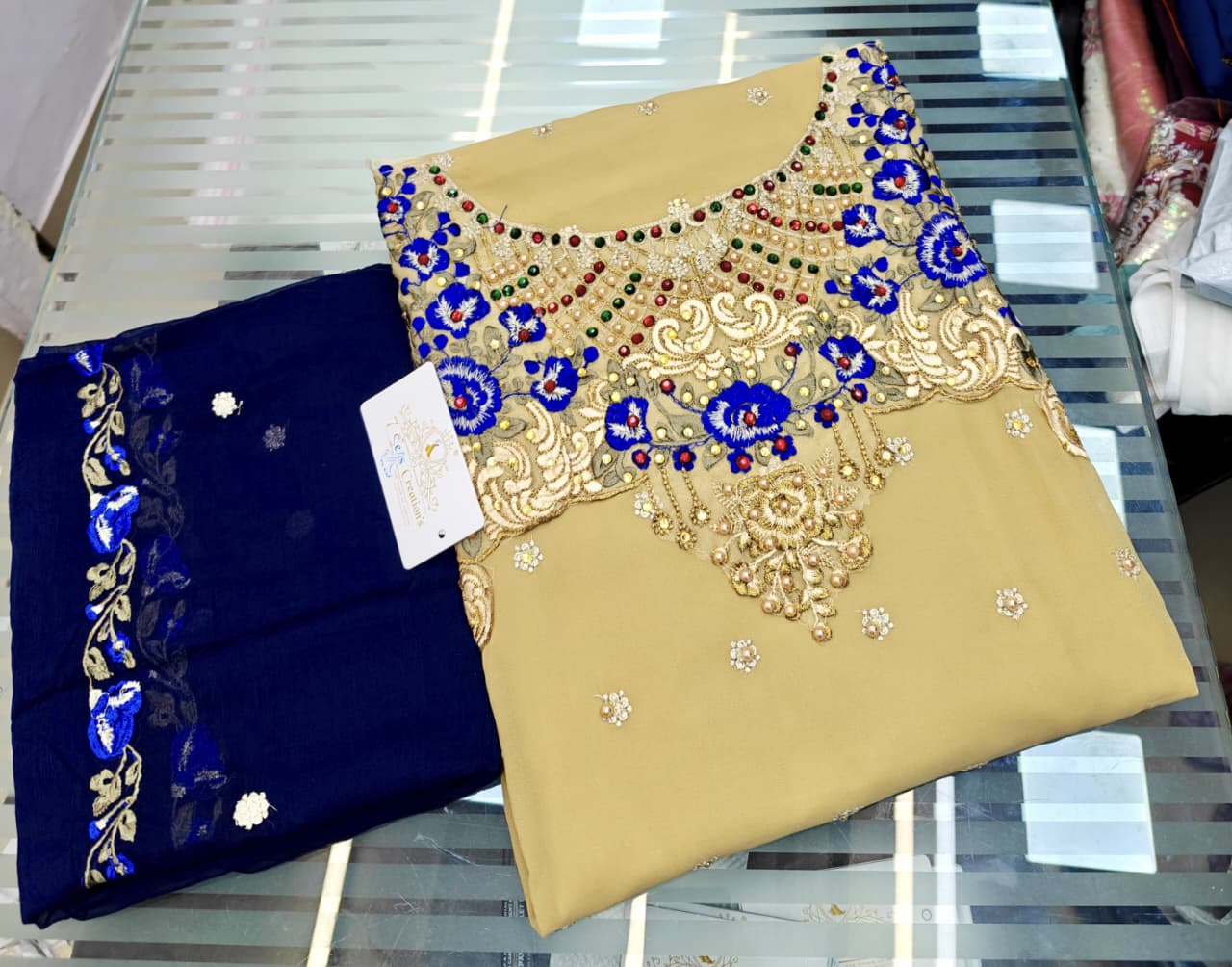 TOP - Georgette with beautiful multi-colored embroidery, diamond and mottis work all over