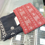 Dupatta - Georgette contrast with multi-colored embroidery work all over .