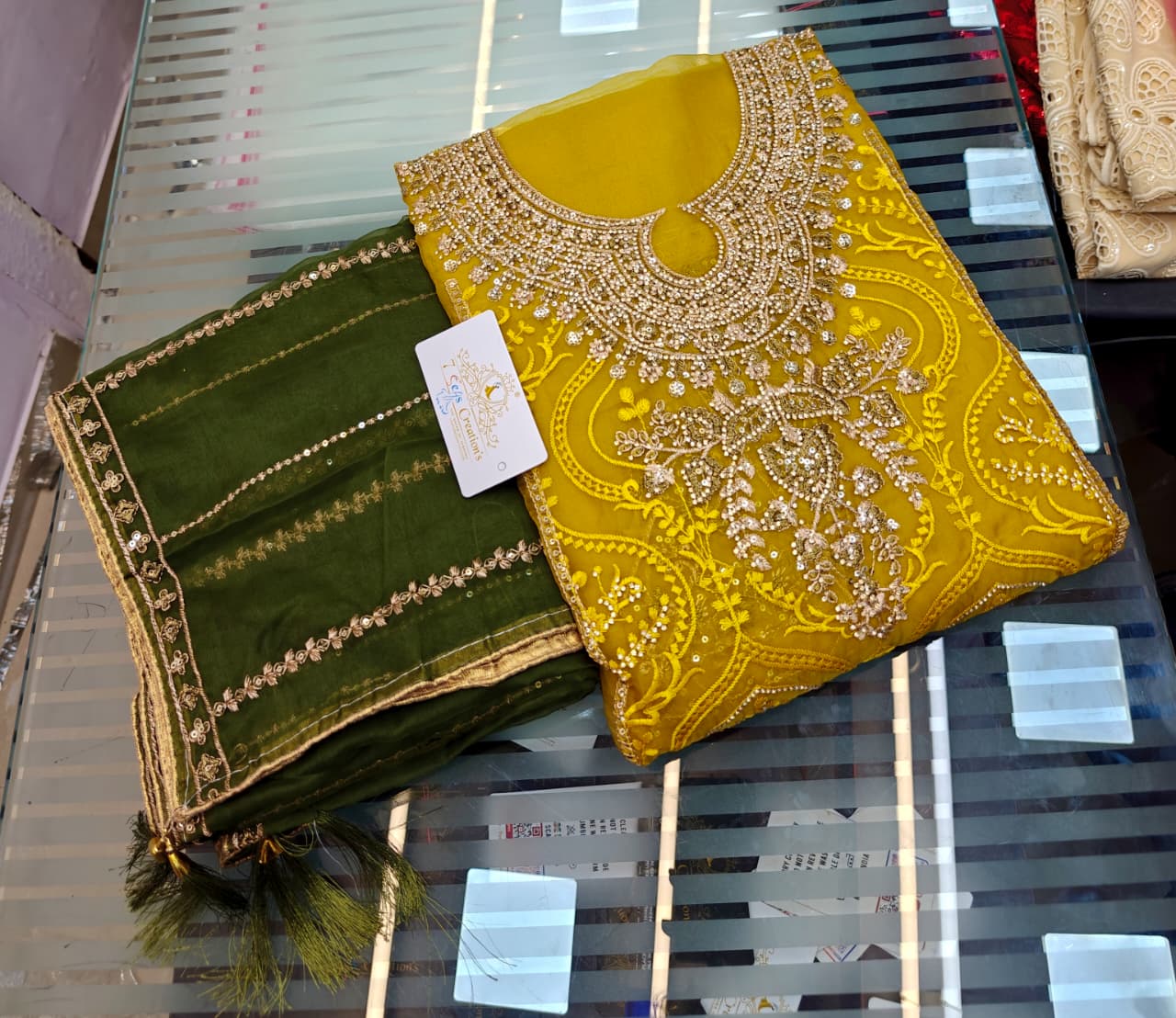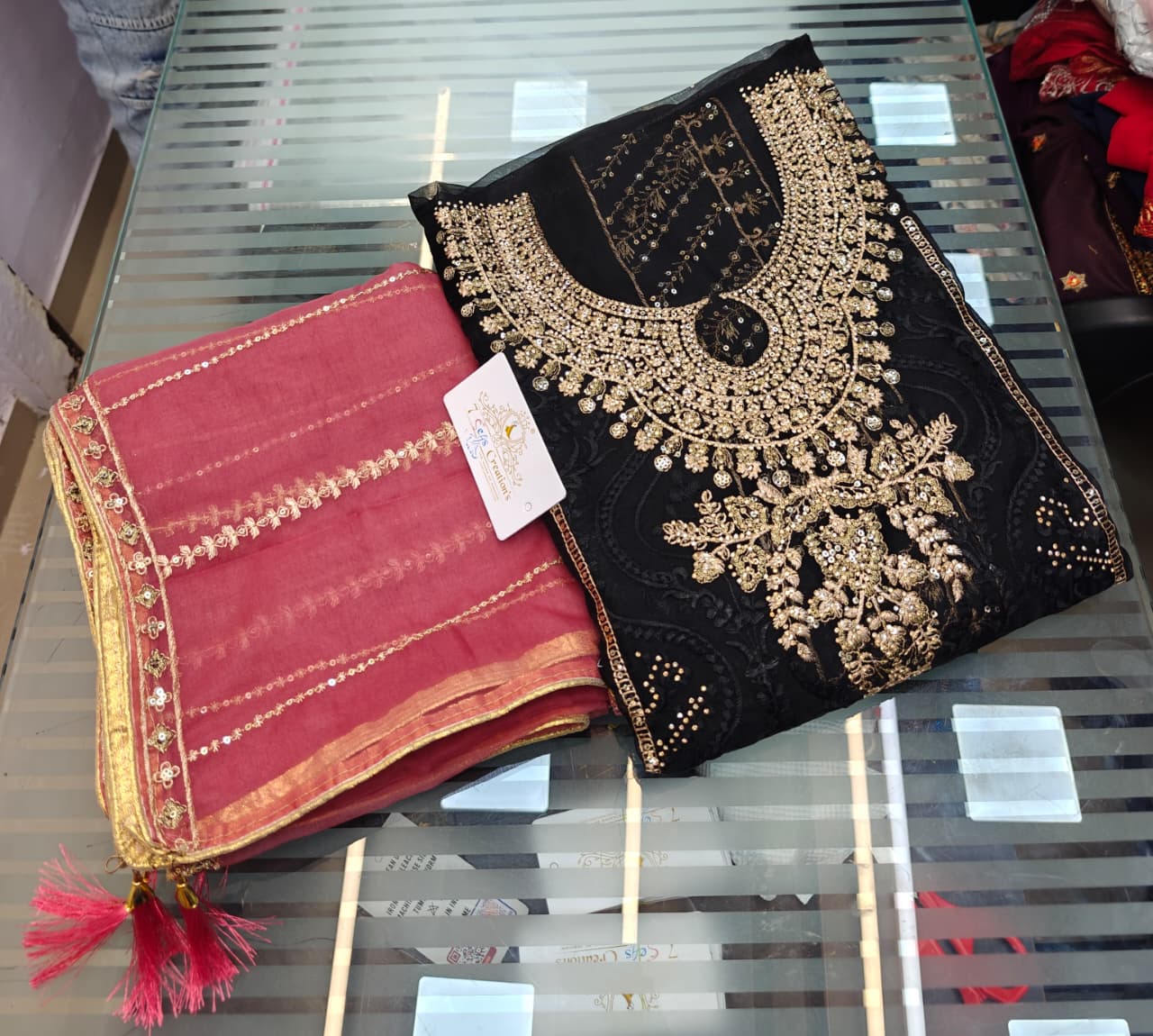 DUPATTA - Organza (Contrast)with beautiful embroidery & sequins work all over