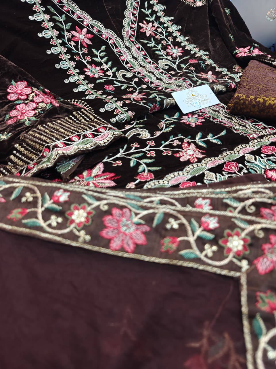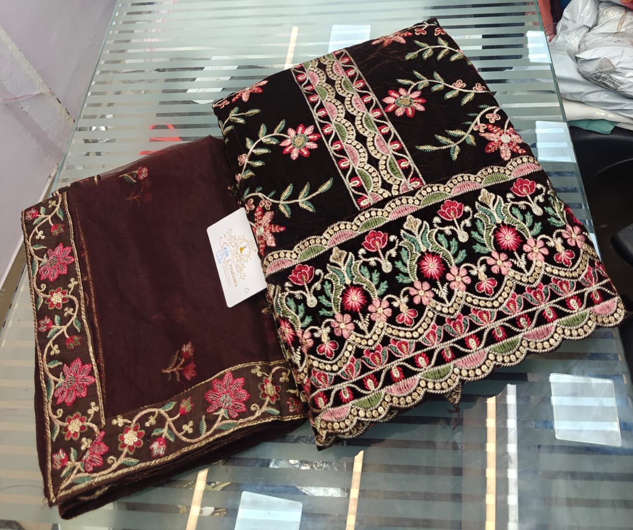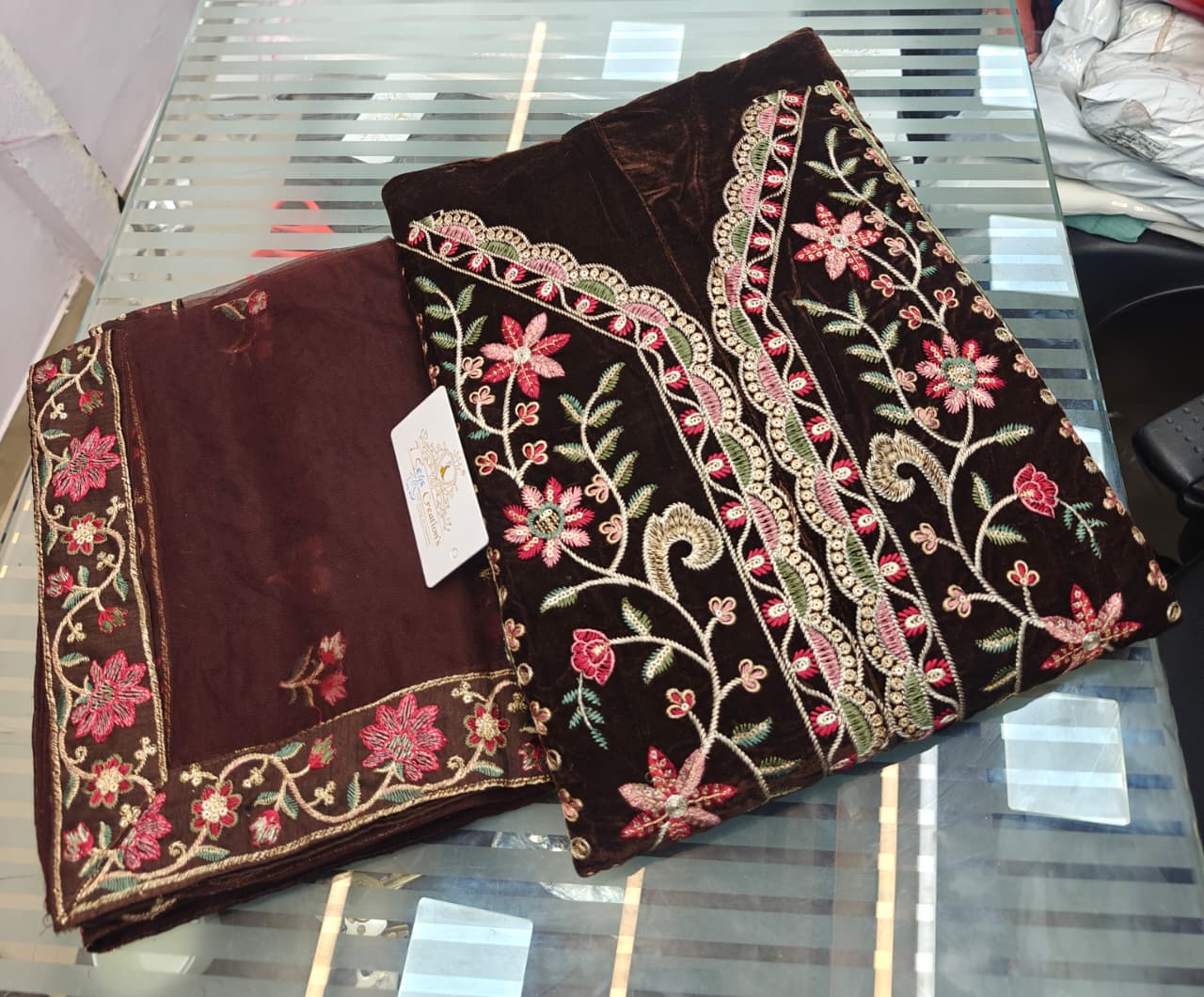 TOP - Pure 9000 micro velvet with beautiful multi-colored embroidery & sequins work all over